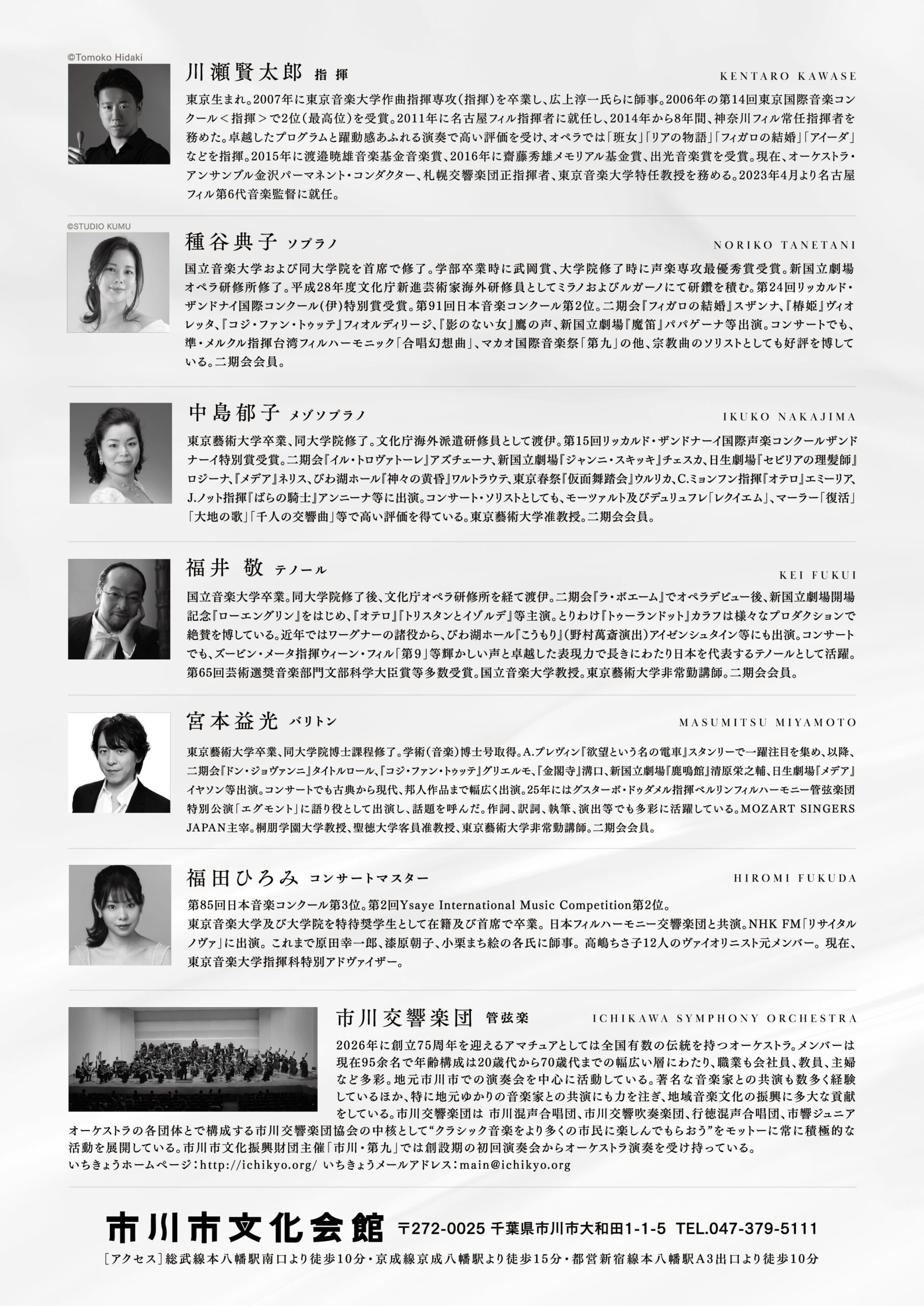 | お問い合わせ | (公財)市川市文化振興財団 047-379-5111 |